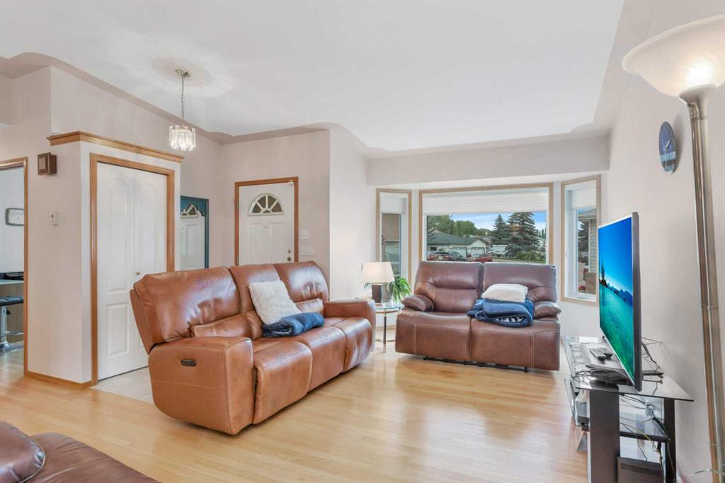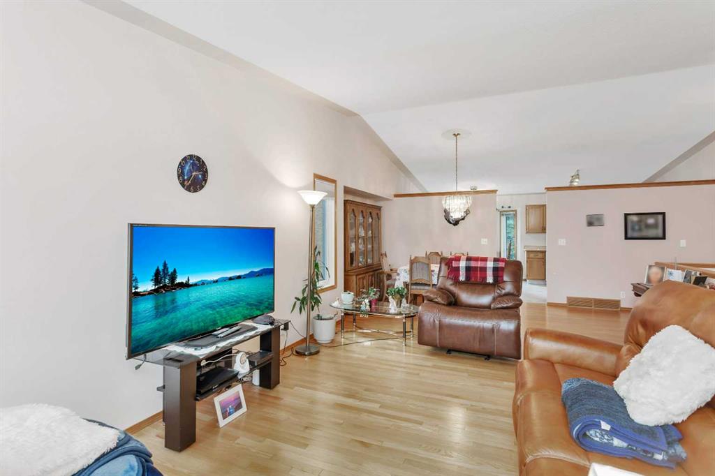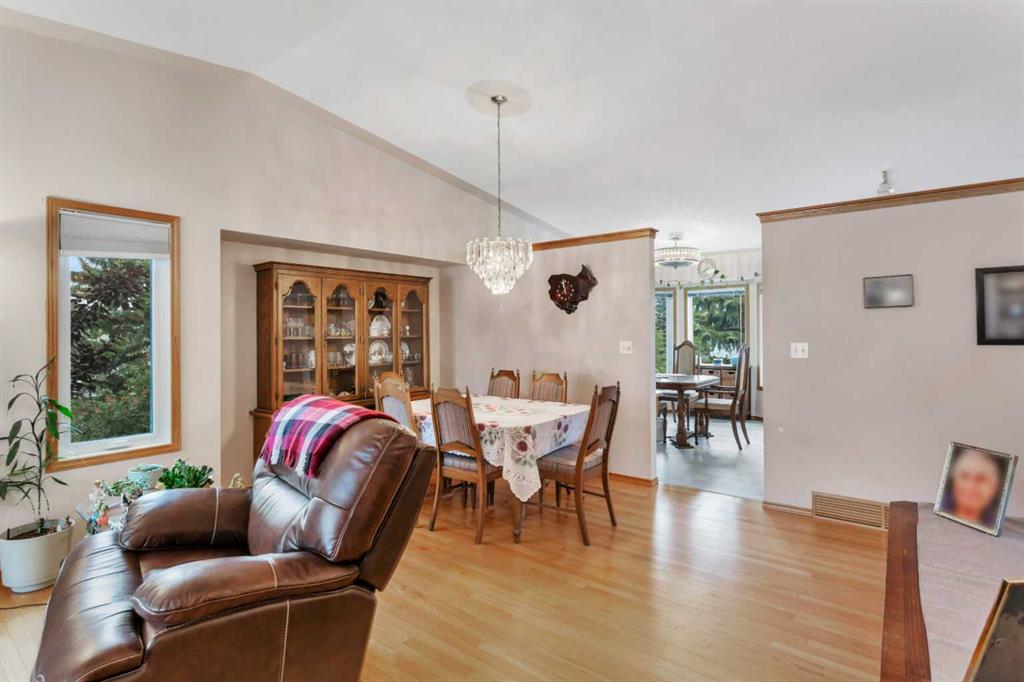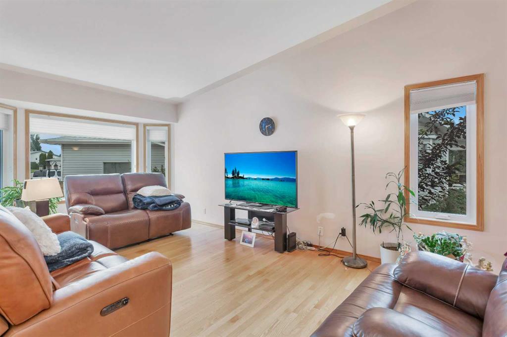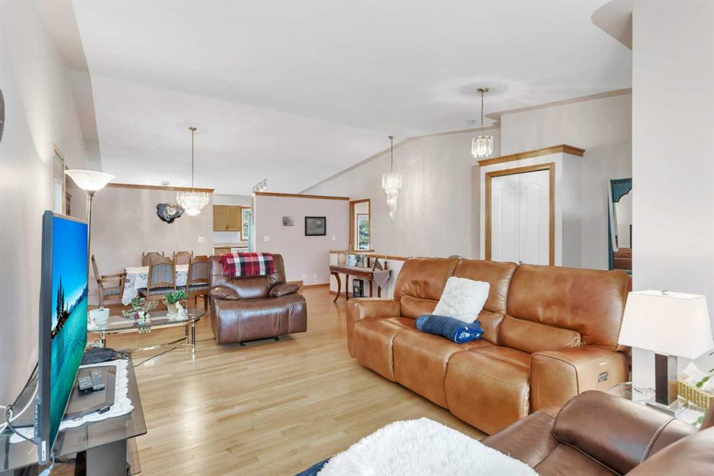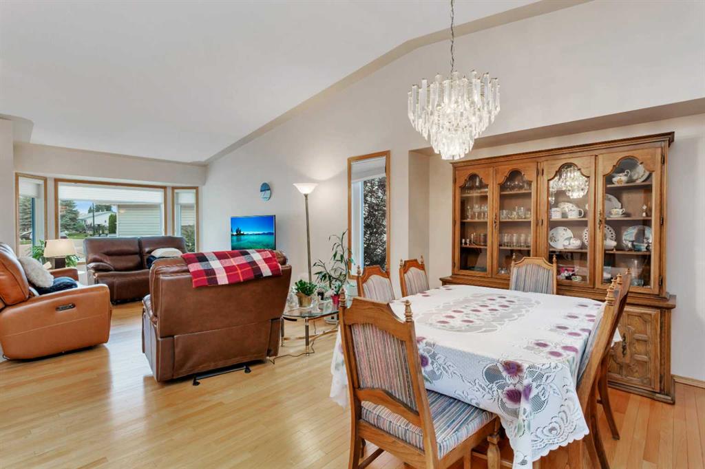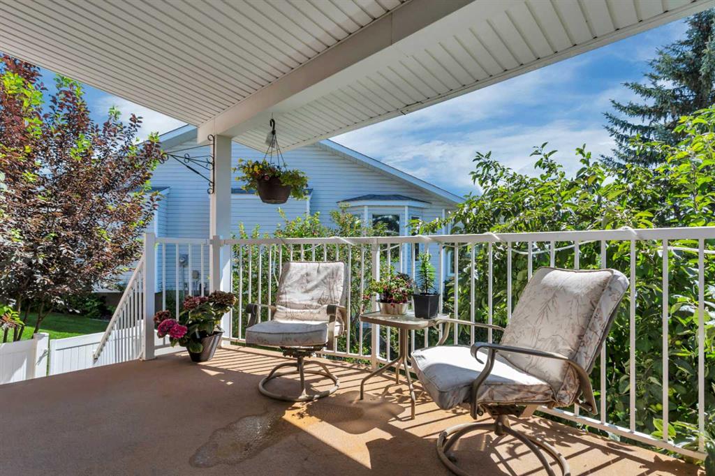 This well-maintained walk-out bungalow is located on a pie-shaped lot, offering a perfect combination of comfort and functionality. In 2024, all windows on both the main level and basement were replaced with triple glazed vinyl windows, resulting in improved energy efficiency for the home. The main floor has 1,352 square feet and features a vaulted ceiling in the kitchen, dining, and living areas, creating an open and inviting atmosphere. The hardwood floors, along with natural wood trim and cabinetry, enhance the home’s warm ambiance. The large primary suite includes a walk-in closet and ensuite with a shower. A 4-piece bathroom with a jetted tub is conveniently located across the hall from a versatile den—ideal for a Murphy bed or sofa bed, making it adaptable to your needs. The generous entry from the garage accommodates a main-floor laundry. A stairlift to the walk-out basement offers accessibility for those with mobility concerns. In the walk-out basement you'll find a spacious bedroom, 3-piece bathroom, kitchenette with a fridge, and bright family room with large windows and cozy corner gas fireplace. Additional features include a sizable recreation room and large storage/furnace room. The custom-covered deck with stairs provides seamless outdoor living space and easy access to the yard. The home's strategic position on the lot allows abundant natural light from east, south, and west-facing windows. This exceptional property is ideal for those seeking a retirement or special needs home without compromising on space and comfort.