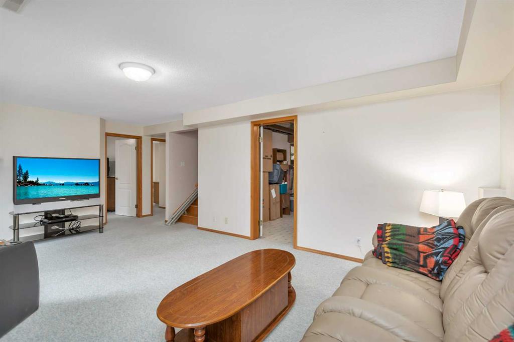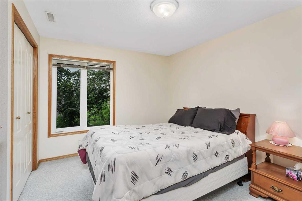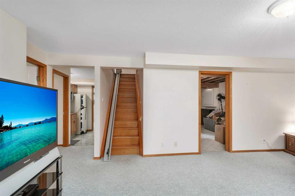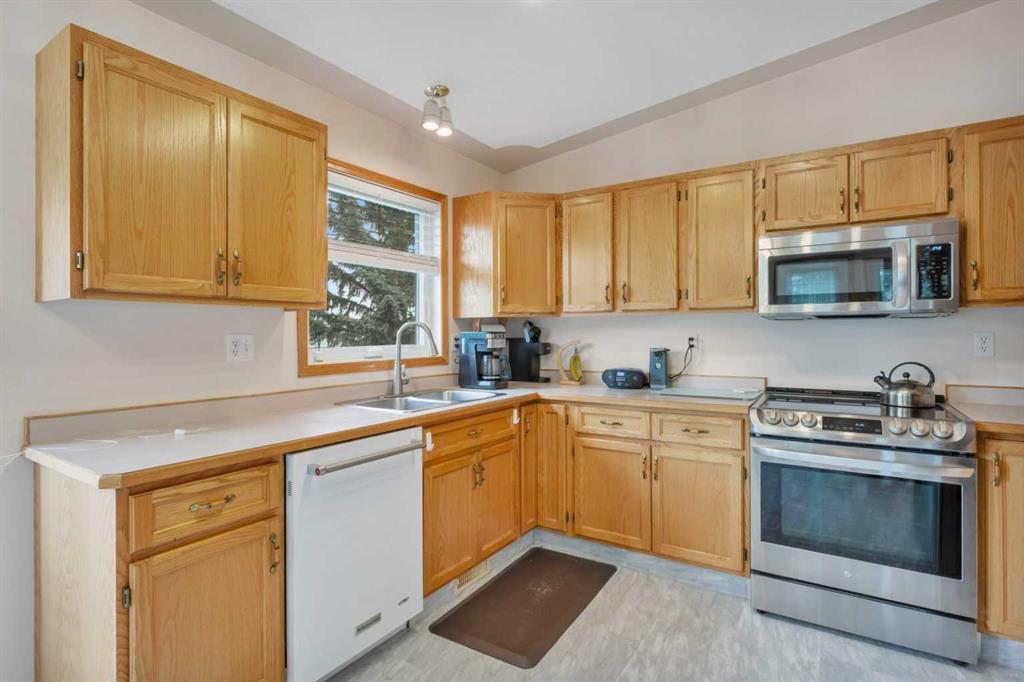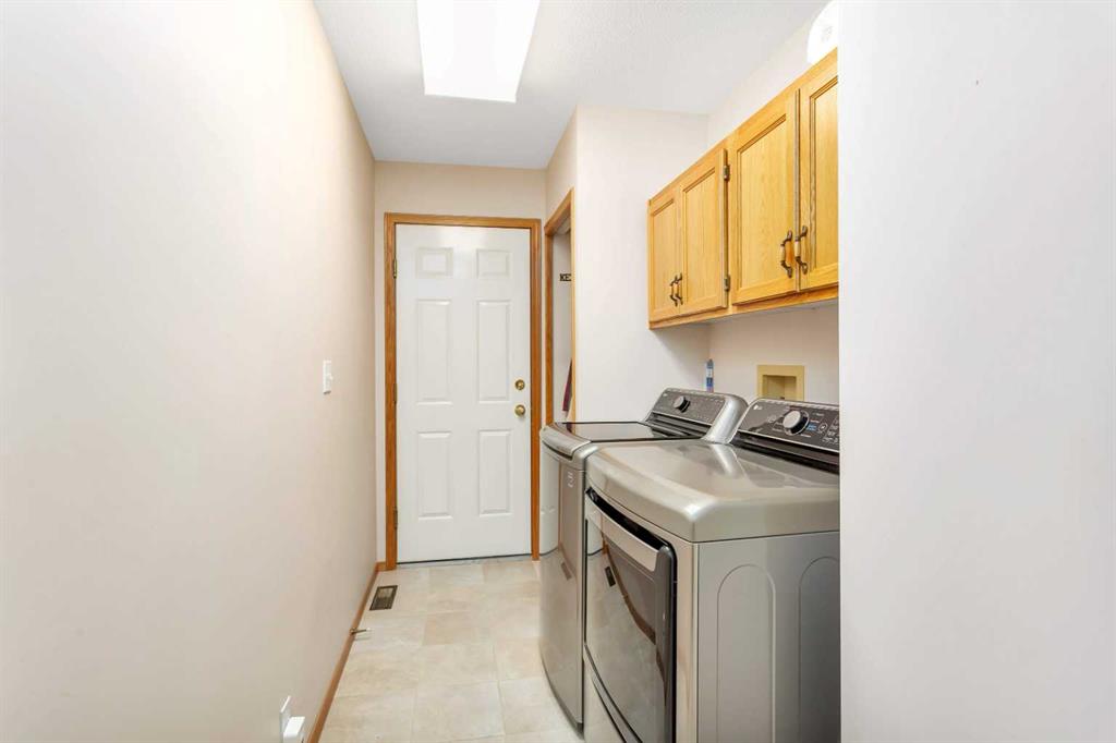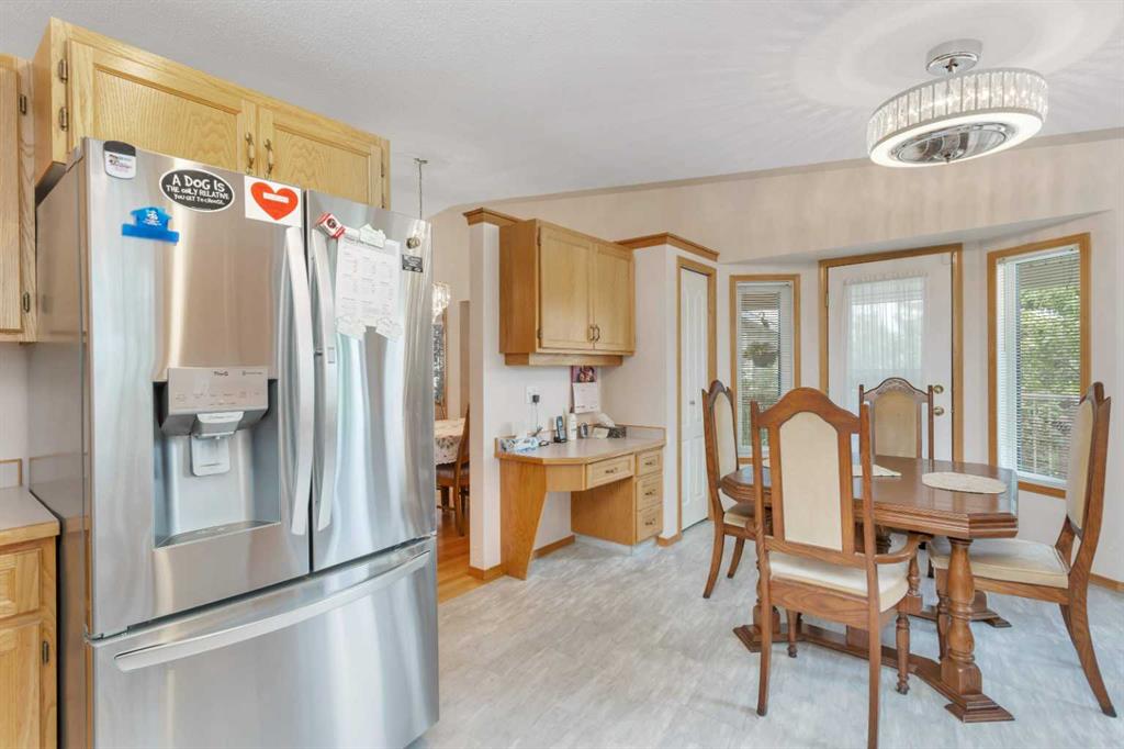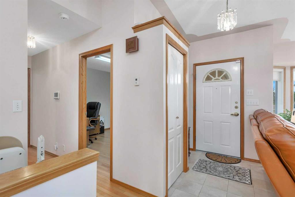 This well-maintained walk-out bungalow is located on a pie-shaped lot, offering a perfect combination of comfort and functionality. In 2024, all windows on both the main level and basement were replaced with triple glazed vinyl windows, resulting in improved energy efficiency for the home. The main floor has 1,352 square feet and features a vaulted ceiling in the kitchen, dining, and living areas, creating an open and inviting atmosphere. The hardwood floors, along with natural wood trim and cabinetry, enhance the home’s warm ambiance. The large primary suite includes a walk-in closet and ensuite with a shower. A 4-piece bathroom with a jetted tub is conveniently located across the hall from a versatile den—ideal for a Murphy bed or sofa bed, making it adaptable to your needs. The generous entry from the garage accommodates a main-floor laundry. A stairlift to the walk-out basement offers accessibility for those with mobility concerns. In the walk-out basement you'll find a spacious bedroom, 3-piece bathroom, kitchenette with a fridge, and bright family room with large windows and cozy corner gas fireplace. Additional features include a sizable recreation room and large storage/furnace room. The custom-covered deck with stairs provides seamless outdoor living space and easy access to the yard. The home's strategic position on the lot allows abundant natural light from east, south, and west-facing windows. This exceptional property is ideal for those seeking a retirement or special needs home without compromising on space and comfort.