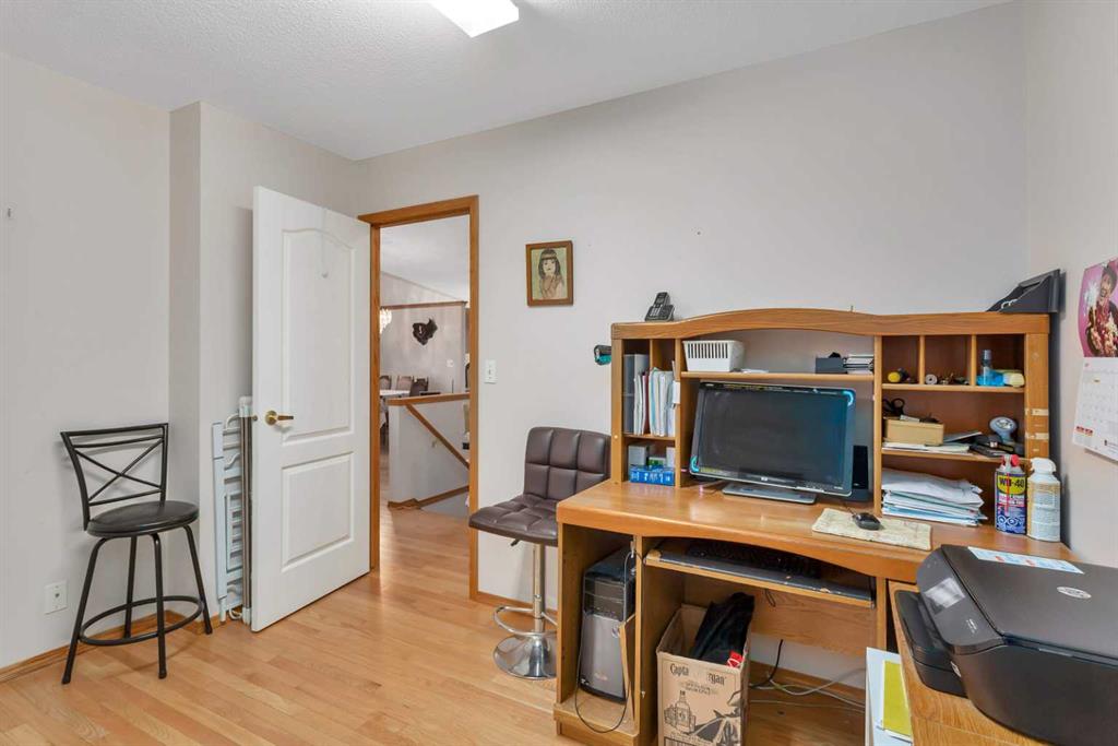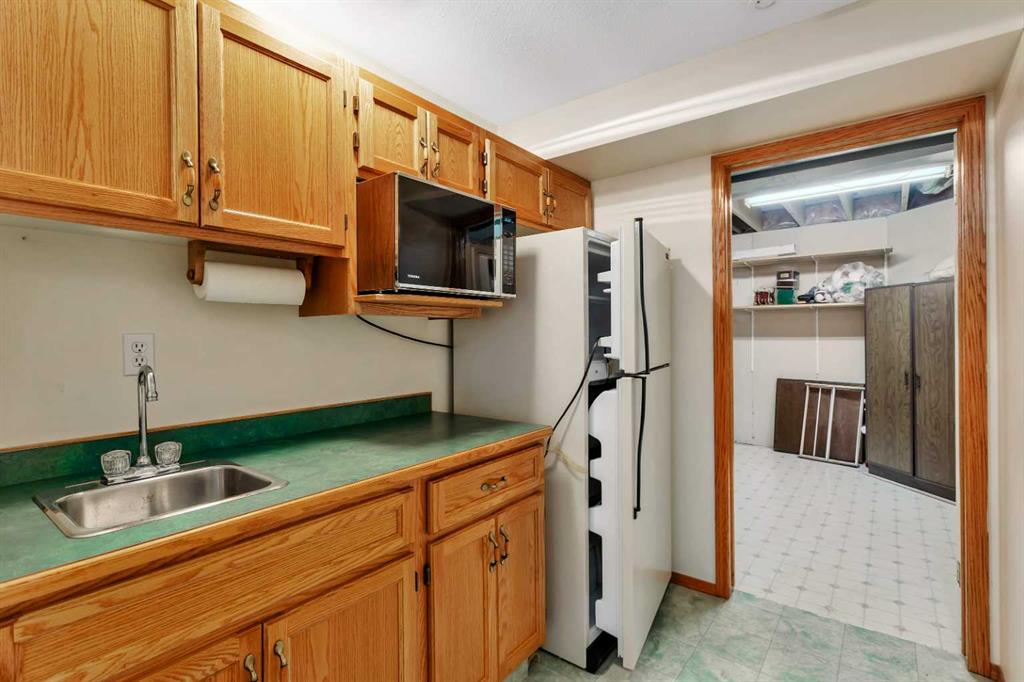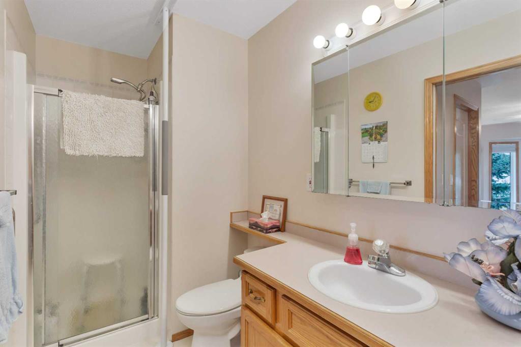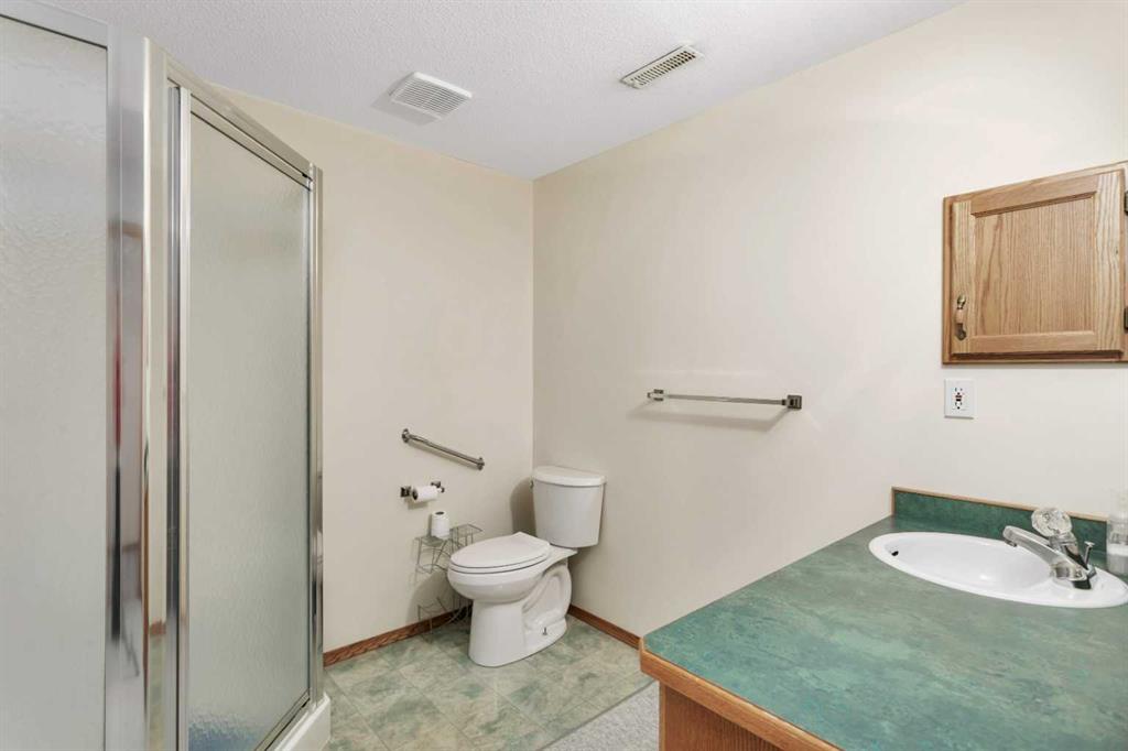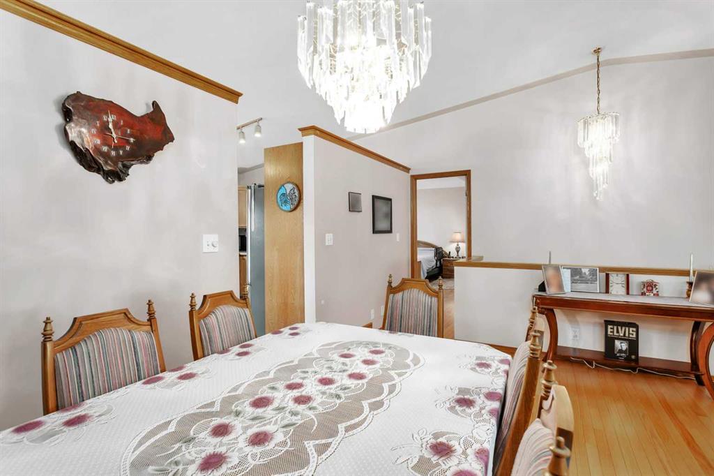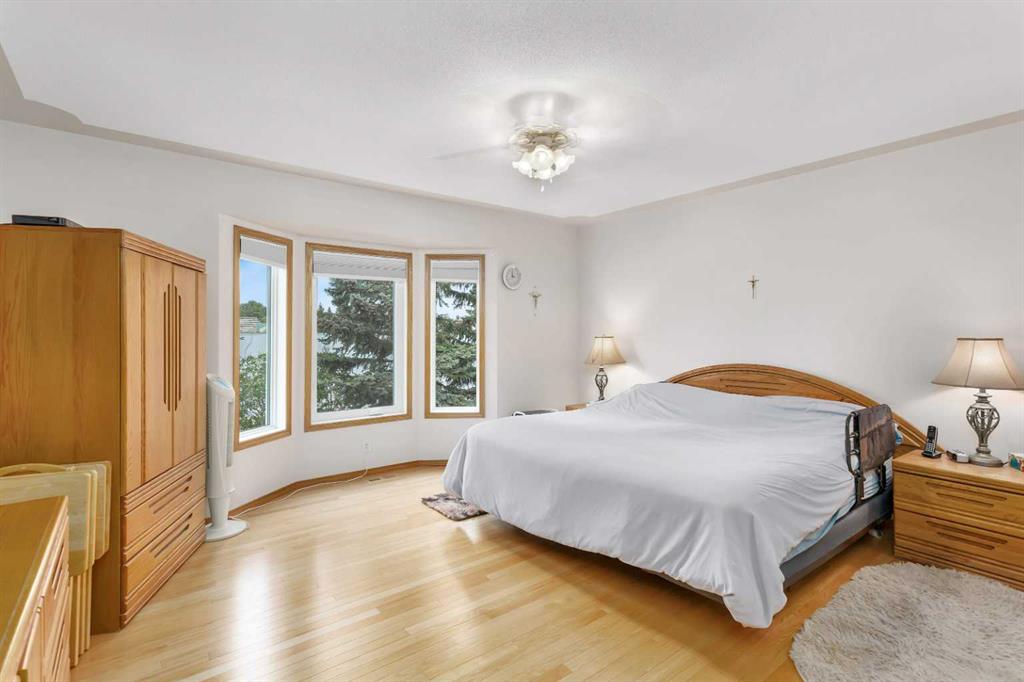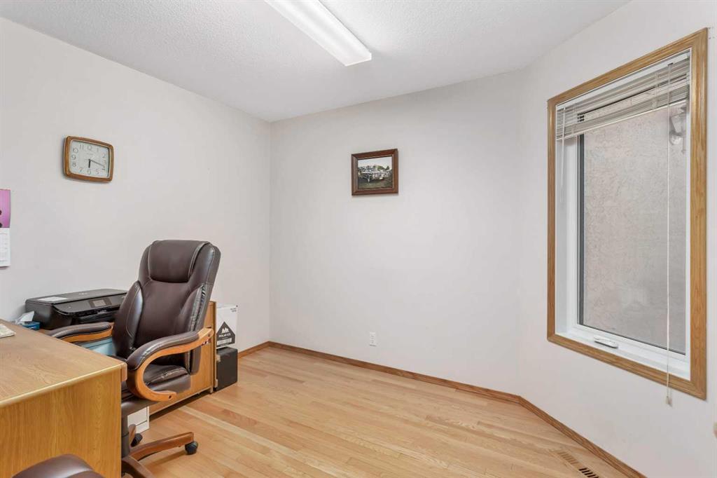 This well-maintained walk-out bungalow is located on a pie-shaped lot, offering a perfect combination of comfort and functionality. In 2024, all windows on both the main level and basement were replaced with triple glazed vinyl windows, resulting in improved energy efficiency for the home. The main floor has 1,352 square feet and features a vaulted ceiling in the kitchen, dining, and living areas, creating an open and inviting atmosphere. The hardwood floors, along with natural wood trim and cabinetry, enhance the home’s warm ambiance. The large primary suite includes a walk-in closet and ensuite with a shower. A 4-piece bathroom with a jetted tub is conveniently located across the hall from a versatile den—ideal for a Murphy bed or sofa bed, making it adaptable to your needs. The generous entry from the garage accommodates a main-floor laundry. A stairlift to the walk-out basement offers accessibility for those with mobility concerns. In the walk-out basement you'll find a spacious bedroom, 3-piece bathroom, kitchenette with a fridge, and bright family room with large windows and cozy corner gas fireplace. Additional features include a sizable recreation room and large storage/furnace room. The custom-covered deck with stairs provides seamless outdoor living space and easy access to the yard. The home's strategic position on the lot allows abundant natural light from east, south, and west-facing windows. This exceptional property is ideal for those seeking a retirement or special needs home without compromising on space and comfort.
